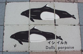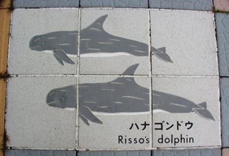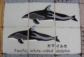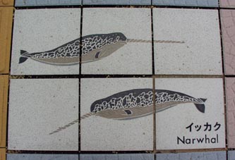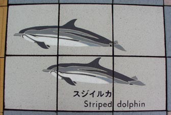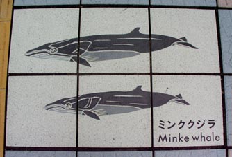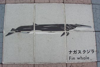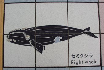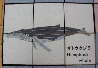 太地の博物館前の歩道に敷かれたタイルに見るクジラのいろいろ