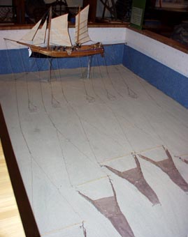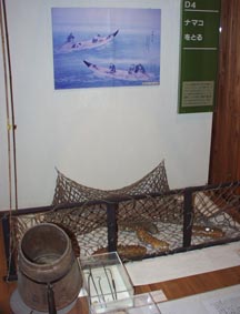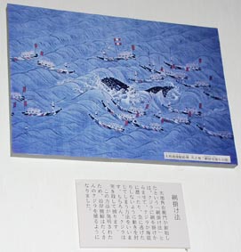 [拡大画像(x9270.jpg)][拡大画像(x9269.jpg)地引き網の模型、説明書き]