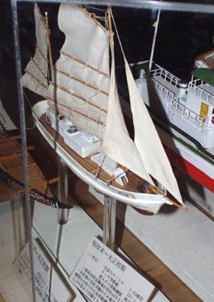 6. 昭和初期、綱製機関付き帆船「神威丸」[拡大画像(x9258.jpg)][拡大画像(x9259.jpg)右-説明書き]