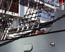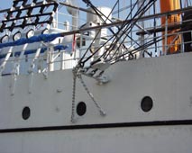 - [画像(x98.jpg)] 「日本丸」のミズンマスト静索近くの舷側に設置された
