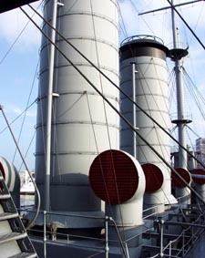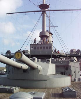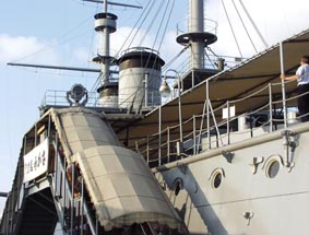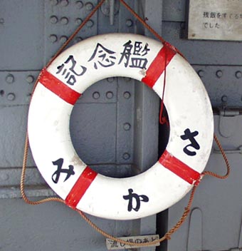 4![]() 1. 指揮官旗 [拡大画像(x10497.jpg)] 2. 列国諸旗章 [拡大画像(x10498.jpg)] 3. 機械水雷 [拡大画像(x10503.jpg)] 4. スカッパー:残飯を捨てる場所でした。救命浮き輪の右側の部分。 [拡大画像(x10504.jpg)][拡大画像(x10506.jpg)]