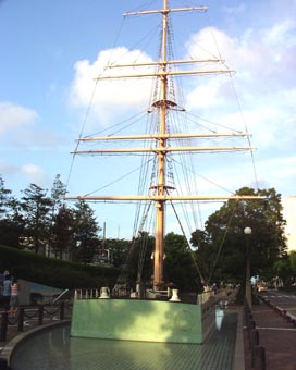 記念艦「三笠」の近くの通りで見つけた日本丸のモニュメント