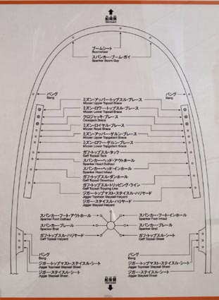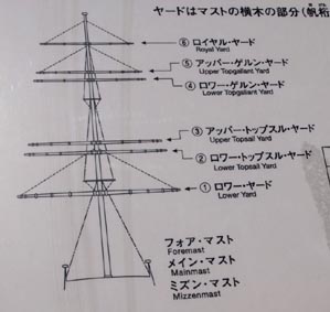 I 日本丸の断面図&マスト、ヤード、支索などのリッギング