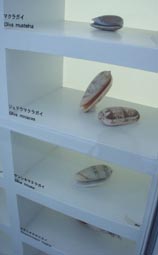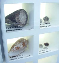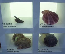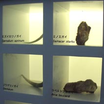 2. ジュズカケイグチ、ワライロナワメグルマ、クロミナシガイ、オオベニシボリガイ [拡大画像(x13436.jpg)] 3. クロミナシガイ、オオベニシボリガイ、アンボンクロザメ、キクノハナガイ [拡大画像(x13437.jpg)] 4. アンボンクロザメ、キクノハナガイ、タガヤサンミナシ、カラマツガイ [拡大画像(x13438.jpg)]