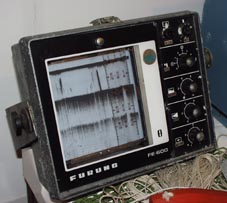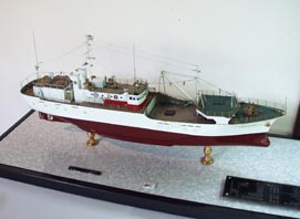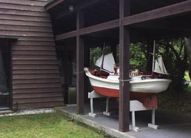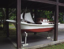 4. 博物館-入り口には漁船模型が展示されている。 [拡大画像(x13638.jpg)][拡大画像(x13639.jpg)] 船の錨の奉納