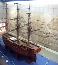 3[拡大画像(x18513.jpg)] 博物館の大ホールに展示された帆船模型