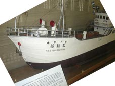 Dai-go Fukuryu-maru, Lucky Dragon No. 5 東京新宿区の国立国際医療センター内に展示されている第五福龍丸の模型。その展示パネルには次ぎのような説明文が 添えられている。