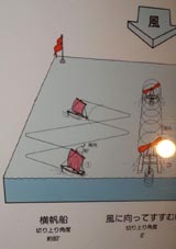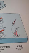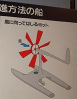 * 「風に向かって進む船: 風の力は昔から船の推進力に使われています。横帆(よこほ)を使った船は、風に向かって