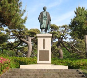 酒田の日和山公園内に河村瑞賢立像が建つ。彼の銅像が建てられるに最も相応しい場所・湊に違いない。