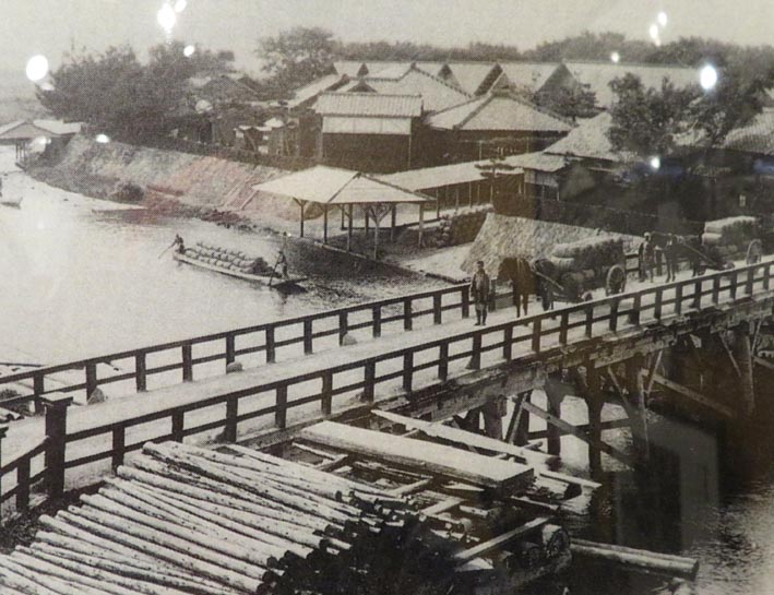 2. 同じくキャプションには「明治末期の山居倉庫」だけ記される。画像中央の小舟は小鵜飼船であろうか。