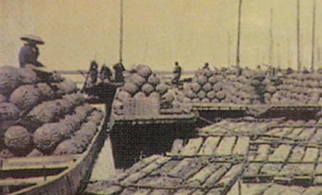 と米俵運搬舟の古写真 [庄内米歴史博物館]