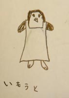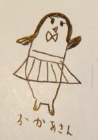 いもうとは おかあさんにしゅうきんぶくろをわたしました。