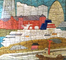 画像1&2は横浜みなとみらい線「日本大通り駅」の地下通路(改札口付近)で見かけた港町横浜らしいモザイク壁画である。