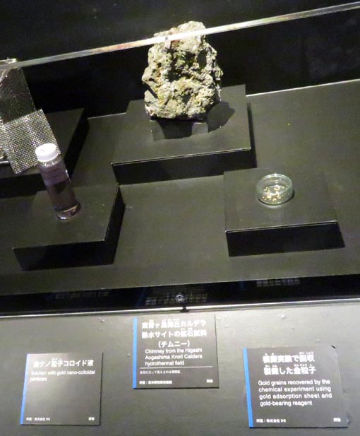国立科学博物館・特別展「海」(2023年)において大変珍しい、熱水からのゴールド(金・きん)を回収する実験装置(実物)が展示された。