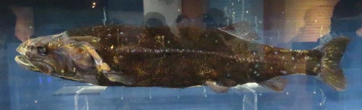 別の説明書きによれば、ヨコヅナイワシは、2016年に駿河湾最深部で採取され、2021年に新種登録されたセキトリイワシ科最大の魚類である。