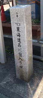 画像3は京急「北品川」駅南寄りの踏切脇に建てられた「品川宿入り口」の標石である。