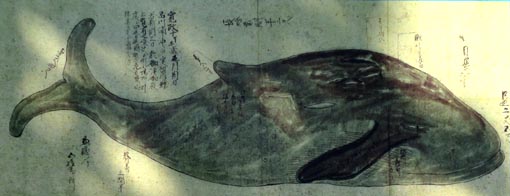 の沖へ船で引っ張って行き、第11代将軍家斉(いえなり)が上覧するということにもなった。その後、鯨は解体され、骨は「州崎弁天」
