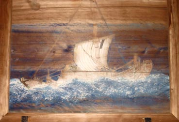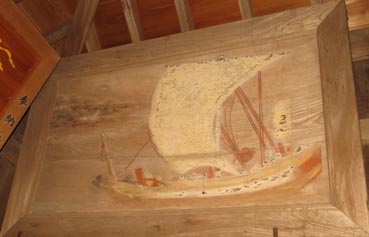 画像4~6のように、同神社に奉納され掲げられている船絵馬の多くは随分と古い千石船であり、奉納者や時期などは不詳である。