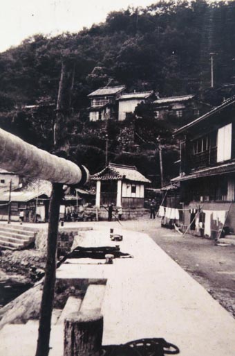 画像4は岸壁が埋め立てられる以前の室津の港における護岸周辺を写している。岸壁に設けられた階段が「雁木(がんぎ)」
