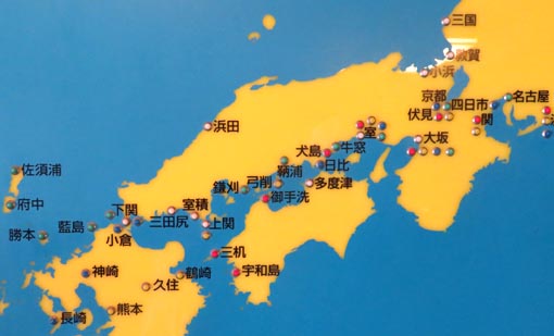 「室」津の位置が示される(大阪の左隣)。九州・大分の「鶴崎」も示される。