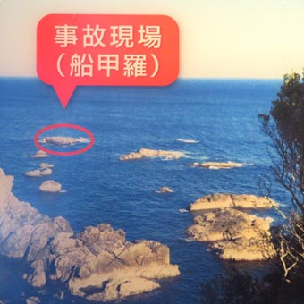 「トルコ記念館」内の小窓から、古くから海の難所として知られる遭難現場の「船甲羅」を間近に臨むことができる。