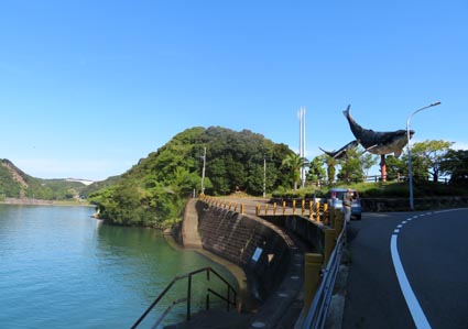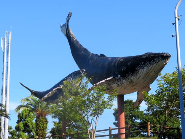 役場方面に向けて数百メートル進むと、ザトウクジラ親仔の巨大なモニュメントが捕鯨の町太地への訪問を歓迎して