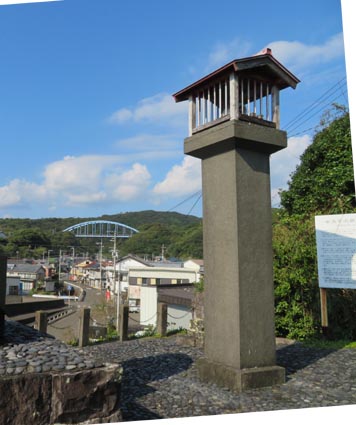 画像1の左端に中浜漁港が見える。画像2は中ノ浜地区の集落。記念碑から集落内へ200メートルほど入った地にジョン万次郎が