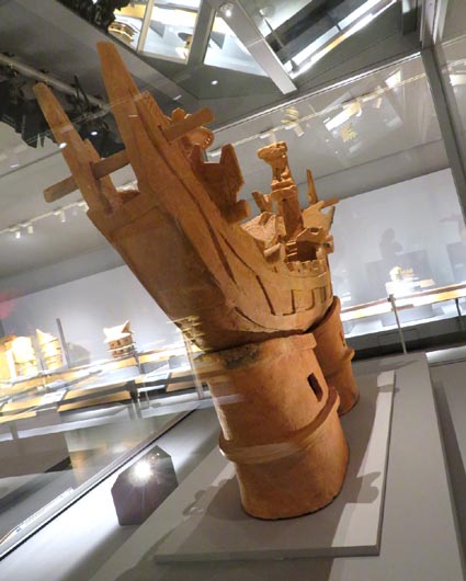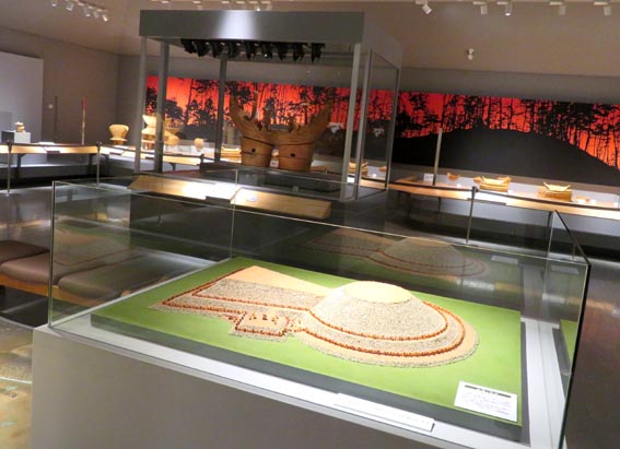船形埴輪展示パネルによれば、船の形をした埴輪の出土例は30数例あるといわれるが、船の上に飾り物が付けられるのは全国でも初めて