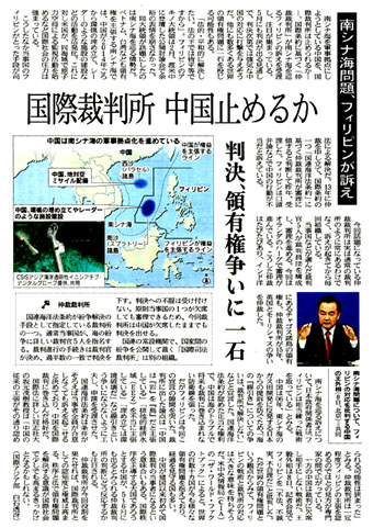 2. 画像 1 は、「国際裁判所 中国止めるか」 と題する2016年3月15日付け日本経済新聞の記事である。