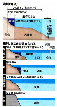 だがしかし、満潮時に水面上にあっても、人間が居住や経済活動を行えないものは「島」ではない。人間が住めず経済的な生活を