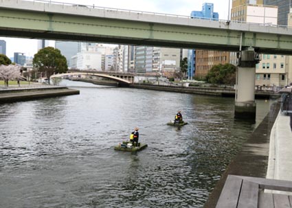 季節は丁度桜が開花する頃で、市内のあちらこちらに桜を愛でることができた。カップルが優雅に花見をしながら大川をのんびりと水上散歩