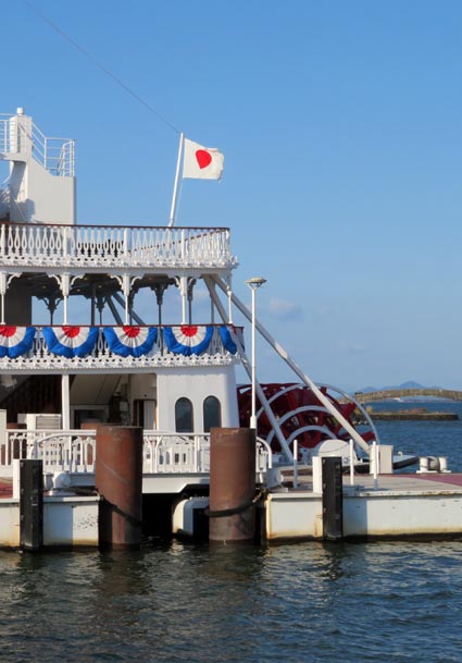 画像3は明日の航海に備えて船尾式パドルを休める寸景を切り撮ったものである。同号の母港は大津港。