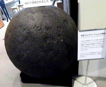 「名古屋大学博物館」の館前に大小3つの丸い石塊が展示される(画像1)。「球状コンクリ―ション」と題する展示案内板には