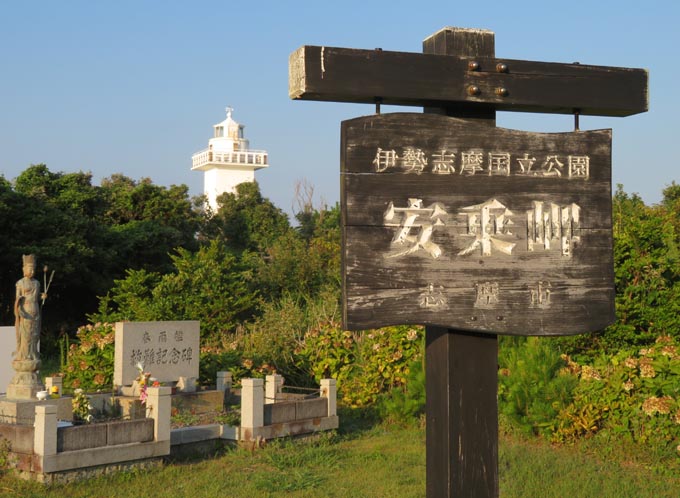 安乗埼(あのりさき)灯台は、雄大な太平洋と波静かな「的矢湾(まとやわん)」を分ける安乗の岬(志摩市)に立つ。