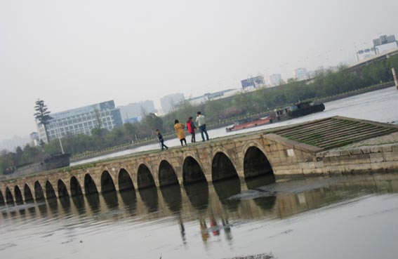 6. 画像は蘇州南方郊外にある宝帯橋。橋は京杭大運河の大きな十字路にある。橋とはいえ、欄干は一つも見当たらず、