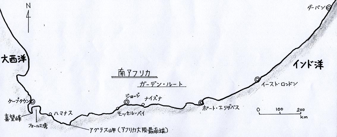 悪さに過敏になり過ぎたためであろうか、ずっとこれまで旅立ちに二の足を踏んできた。その機会はまだ現実のものとはなっていないが、その実現を夢見てまたそれに備えて、ケープタウンとその周辺の沿岸諸都市を辿る旅の大雑把なプランを描いてみた。